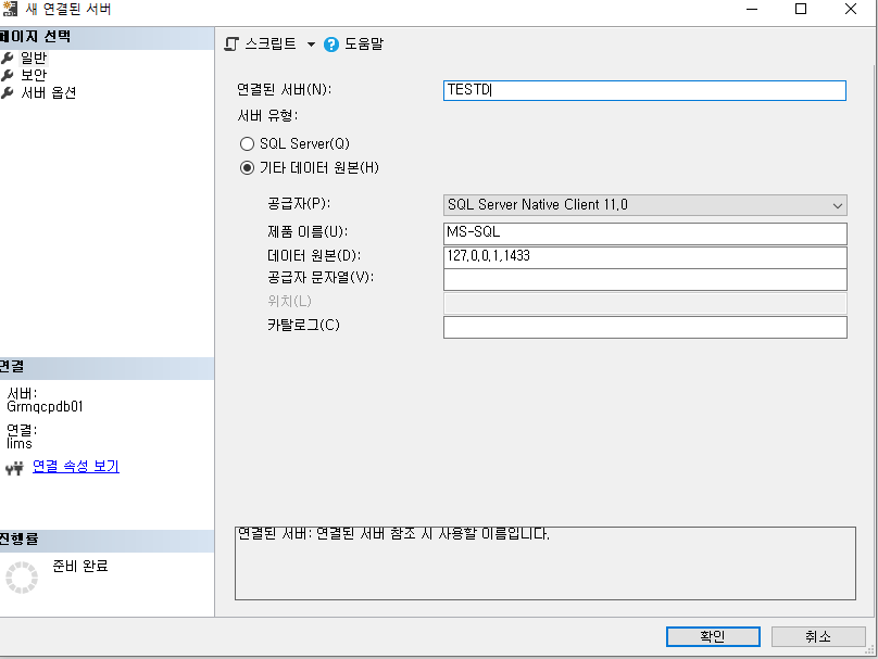 1.SSMS 실행 >서버개체>연결된 서버 우클릭>새 연결된 서버